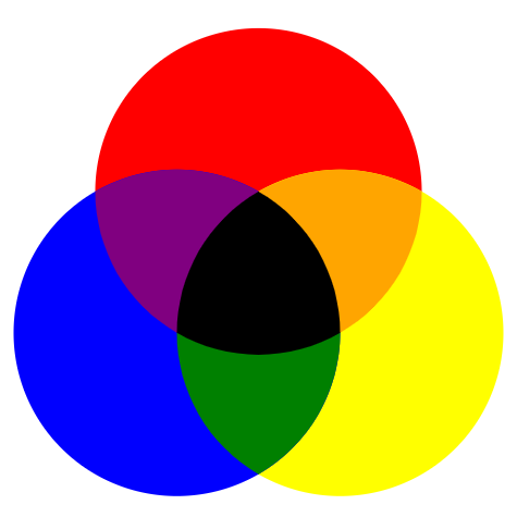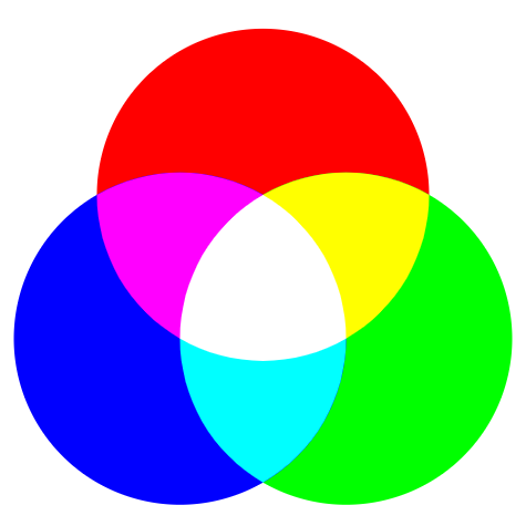 rgbfunction creates colors based on light. When you mix light, you get brighter and brighter colors. This is different than mixing paints, such as in art class. When you mix paint, you get darker and darker colors. (With light, red + green = yellow!) rgbtakes three whole numbers between 0 and 255 as inputs. Each number specifies how much red, green, and blue light should be added together—the bigger the number, the more of that color you mix in. With 256 values for each input, you have (literally) millions of options: 256 × 256 × 256 = 16,777,216 !
