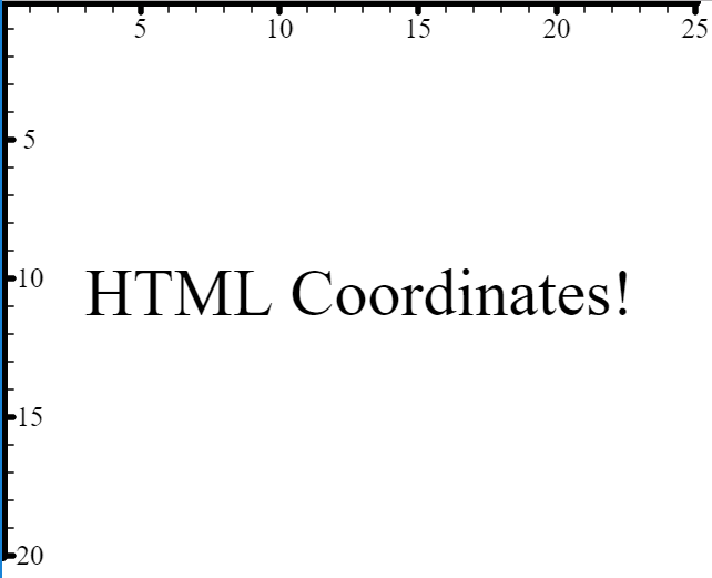 - In HTML as in many other graphics systems, the origin is located at the top left corner of the screen, with the positive x and y values going to the right and down, respectively. Pencil Code interprets numeric data as HTML coordinates when they are expressed as objects with property names