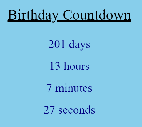 0.1,0.1 + 0.1,0.1 + 0.1 + 0.1, up to the sum of 10 tenths. Then devise a means to "fix" these problems using functions introduced in this lesson. - Countdown: Show the exact number of days, hours, minutes, and seconds until your next birthday or some other important upcoming event.