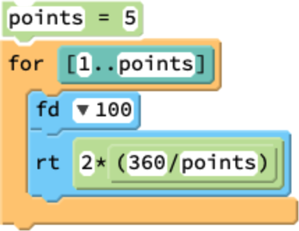 - The examples below illustrate how variables can be used to simplify code and facilitate code maintenance. Both snippets trace out a five-pointed star. However, the code on the right more clearly shows the logic of our work. Additionally, to draw a star with more points, all you need to do is change one number!