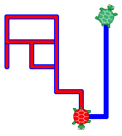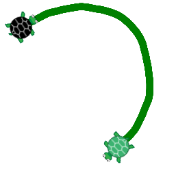 - Create two scripts in which two turtles follow the same randomly generated path, but the second one follows a few "seconds" behind (i.e.,
