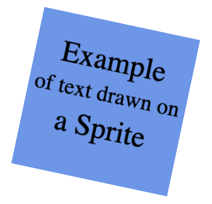 Rather than add an HTML element for text, such as <label> or <div>, it is also possible to add text directly to the existing background HTML graphical <canvas> element or to the <canvas> element of a specific sprite. This option was illustrated above, in the discussion of What Can Go Wrong. Another simple example is provided here: