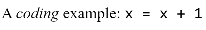 label "A <em>coding</em> example: <kbd>x = x + 1</kdb>"