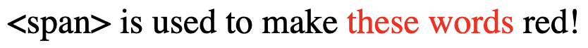The <span> tag is an inline container tag which is frequently used in conjuntion with CSS or Javascript to mark up subsets of text within labels, such as changing the font, font size, or color, as well as adding decorations such as underline or overline. Formatting rules for a span container can also be hardcoded into HTML using the <span> tag's style attribute, as illustrated in this script, which yields: