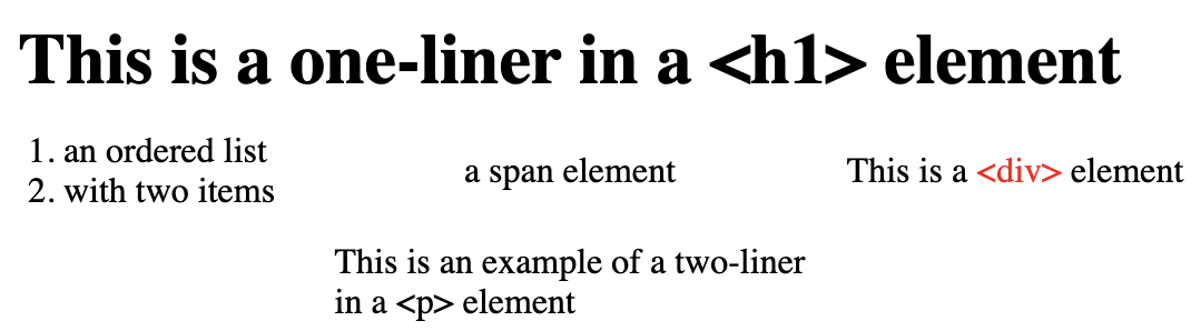 The <br> and <hr> tags insert a line break and a horizontal rule (i.e., a line), respectively. For example,