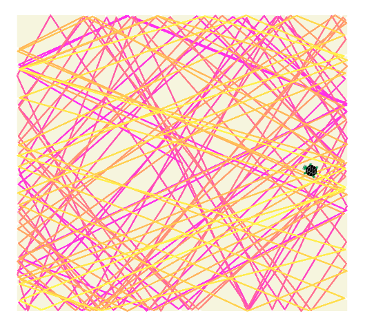 touchesto sense when the sprite reaches an edge. Usedirectionto determine the turtle's new direction; you will likely need to use conditional logic as well, as the computations for the new direction depend on which side you are touching: left, top, right, or bottom.LaserTurtle: Write a script that creates many turtles and places them randomly about the screen. As the turtles, are created, have the default turtle zap and destroy any turtle that gets within 200 units of it. (For this exercise, you can "destroy" a turtle by simply hiding it.) To show the laser, use a hidden turtle that draws a line from the default turtle to the turtle it is zapping, and use the