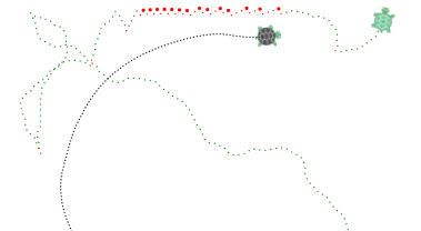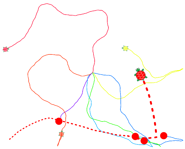 - CarnivorousTurtle: Randomly place several turtles on the screen, and have each move randomly. Add a red turtle that heads to and eats the turtle closest to it. The red turtle should get bigger and faster with each successive meal. An easy way to code this is to use