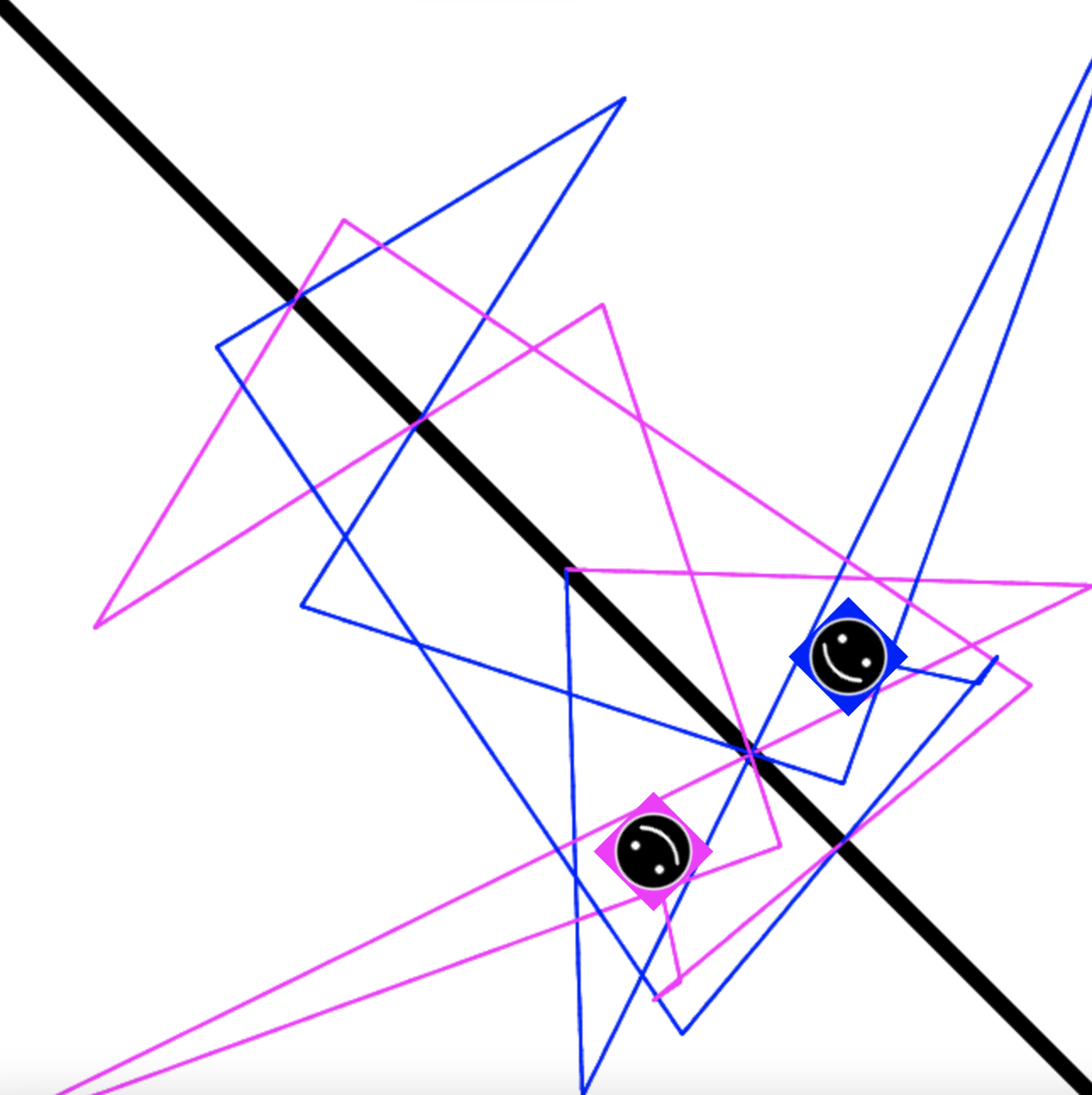 MirrorMovers: Write a program with two sprites that generates a symmetric pattern randomly. Do this by directing one sprite to move to a random location that is generated with