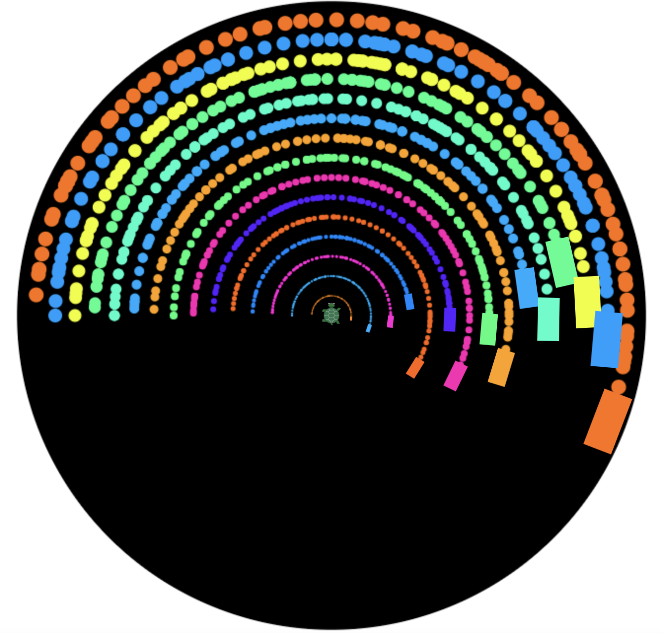 The ColorEaters activity is designed to illustrate how useful it can be to add additional properties to turtle objects. Encourage students to define an array that references all the turtles, and then use the syntax for t in turtles to iterate over that collection.