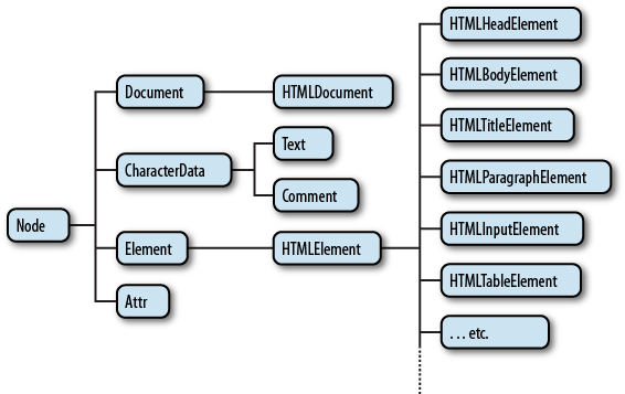 The JavaScript DOM API defines classes that correspond to different types of DOM nodes. Node is an abstact base class upon which other DOM API objects are based.