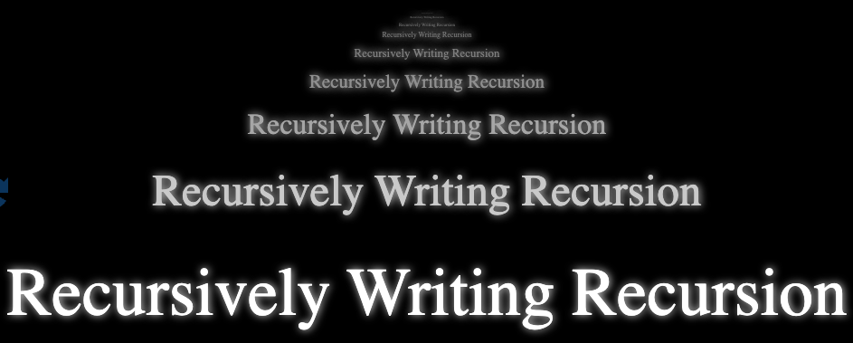 RecursionInAWord: Write a script that repeatedly prints a phrase to the screen, using smaller and smaller fonts at successively higher positions on the screen. (Alternatively, you might tweak that program so that the small phrases appear first.)