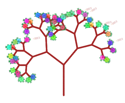 There are many potential variations of the Tree program: what angles? how many branches? how much should length change? An additional design consideration is whether to use a single sprite to do the drawing, or to instantiate additional sprites at each branch. The latter approach is facilitated by use of the turtle clone method, as illustrated in this script.